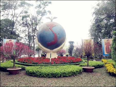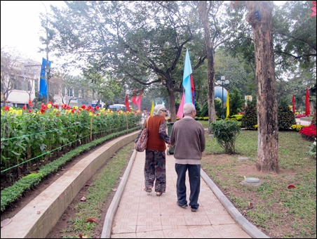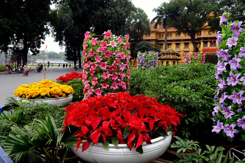 | Di sekitar danau Hoan Kiem, sentral ibukota Hanoi dinanam banyak bunga |