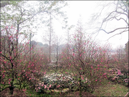 | Bunga Mei ditanam di tepian danau Hoan Kiem |