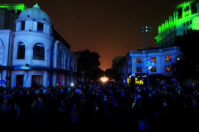 | Kota Hanoi pada malam harinya secara serempak mematikan lampu di jalan, semua dekorasi dan papan iklan selama satu jam di banyak tempat |