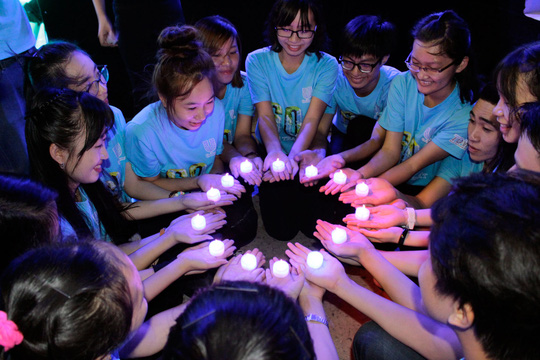 | Para pemuda kota Ho Chi Minh menggunakan lampu led untuk menghemat energi |