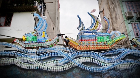 (VOVWORLD) - Ruas jalan di tepian sungai Hong (sungai Merah) di kelurahan Phuc Tan, dulu merupakan tempat tertumpuknya banyak sampah, sekarang ini menjadi satu ruang artistik yang sangat unik dari botol plastik, pecahan kaca, sampah plastik.