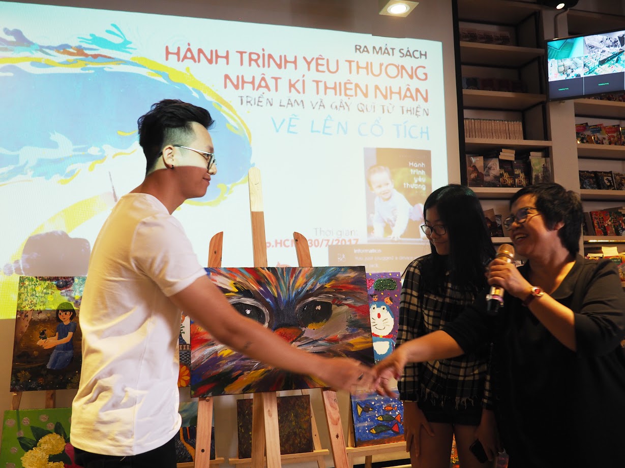 Kisah tentang anak bernama Thien Nhan dan ibunya dalam perjalanan untuk berobat dan membantu anak-anak yang bernasib malang telah mengharukan komunitas. Saudari Luong Kim Lien, 42 tahun, peserta lelang lukisan memberitahukan: “Saya sangat mencintai ibu-anak Thien Nhan, bersimpati dengan mereka dan sangat mengagumi kedua mereka, maka pada hari ini, saya datang ke sini. Saya membeli sebuah lukisan tentang seorang anak yang sedang duduk di tengah-tengah satu ruang yang sangat bersifat dongeng. Kesan saya yang pertama ialah satu ruang yang sangat bersifat dongeng. Saya hanya ingin memberikan sebagian sumbangan kecil dalam membantu anak-anak yang menjumpai kesulitan, tetapi bervitalitas menggeliat diri”.