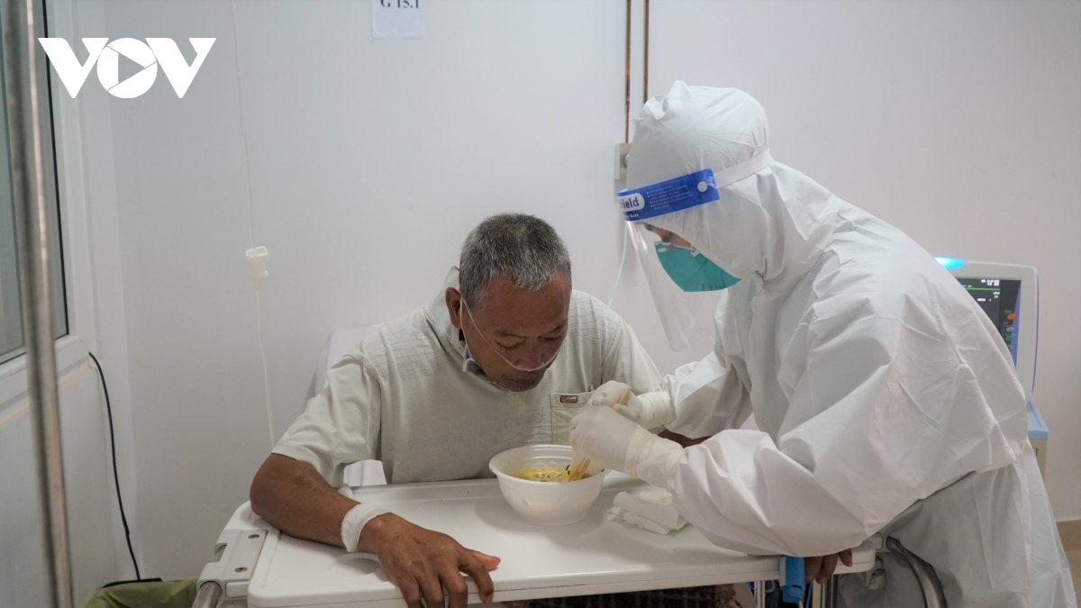 Saat ini di zona pengobatan pasien parah Covid-19 ada lebih dari 80 orang yang dirawat. Sebagian besar adalah pasien lanjut usia dengan penyakit bawaan seperti diabetes, hipertensi, dan sirosis. Perawat Nguyen Thi Loc mengatakan: