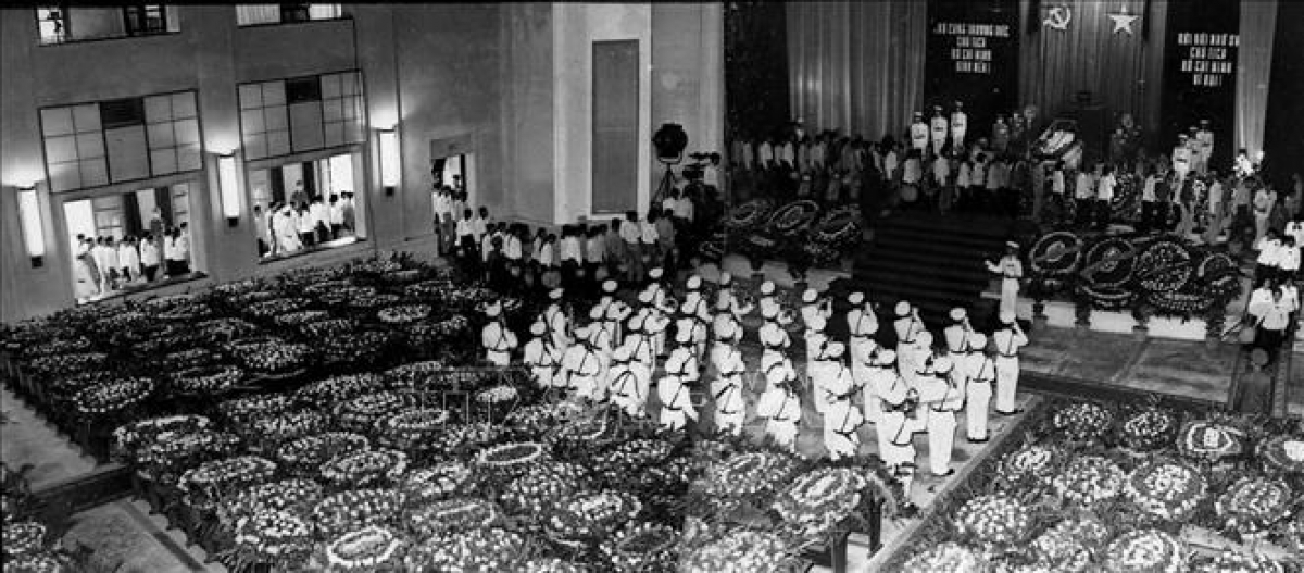 Delegasi-delegasi dari berbagai negara sahabat Vietnam Utara berdatangan untuk menyatakan turut berduka cita dan menghadiri upacara pemakaman. Jenazah Ho Chi Minh dibalsem terletak di dalam sebuah peti kaca disemayamkan di Gedung Ba Dinh Square, gedung yang biasanya dipakai untuk pertemuan-pertemuan partai, pidato-pidato. Lapangan di mukanya bernama Ba Dinh Square, yang biasanya untuk parade, penuh oleh rakyat yang berbaju putih dengan tanda berkabung di dada mereka. Meratap pelan atau menangis terisak-isak. Ho Chi Minh memang seorang paman yang sangat dicintai oleh rakyatnya."