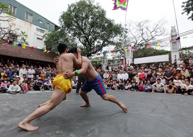 (VOVworld) – Sudah menjadi tradisi, selama ratusan tahun ini, setiap kali musim Semi tiba, pada tanggal 4 sampai 7 bulan pertama menurut kalender imlek, pesta gulat desa Mai Dong akan diselenggarakan di balai desa “Nghe”, desa Mai Dong, yang sekarang di kecamatan Mai Dong, kabupaten Hoang Mai, di bagian selatan ibukota Hanoi. Di tengah-tengah suara genderang yang bergelora, para pengunjung tampaknya lebih antusias karena mereka semua ingin datang lebih dini untuk bisa tepat waktu menghadiri acara pembukaan pesta ini guna melihat ciri budaya khas desa yang terkenal di ibukota Hanoi.