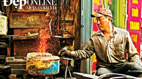 Pandai besi yang tetap menjaga api di jalan Lo Ren, Ibukota Hanoi