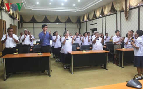 Itulah perintah dari kepala kursus “Yaya” Pitoon Sinqampon. Kalau hanya mendengarkan suaranya yang tidak lantang, tidak ada yang pikir bahwa pak guru ini telah pensiun selama bertahun-tahun ini. Ikut serta dalam dua angkatan kursus untuk kaum lansia, dia mengatakan: “Dulu, saya adalah guru. Setelah pensiun, ada banyak waktu senggang, maka saya ikut serta dalam kursus ini, membantu guru mengajar cara membuat barang kerajinan tangan artistik. Saya bisa bernyanyi, menari, membimbing program dan lain-lain. Ketika baru datang ke sini, semua masih merasa malu-malu, tetapi ketika melihat saya melakukan aktivitas dengan semangat bergelora, maka mereka dengan antusias ikut serta. Semua orang dalam angkatan kursus ini memberi nama “Yaya” yaitu nama seorang bintang film yang terkenal di Thailand kepada saya”.