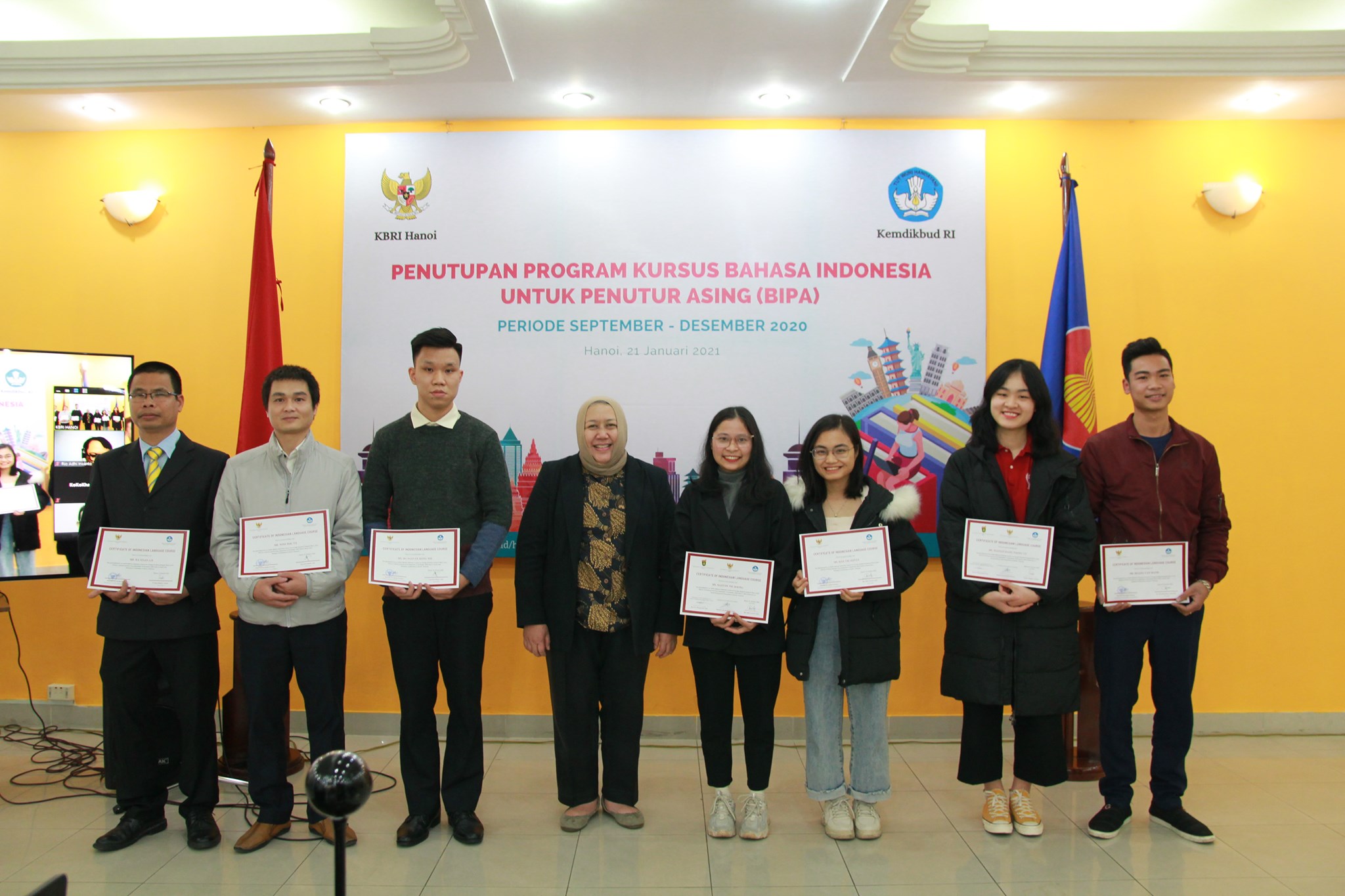 Kursus bahasa Indonesia untuk pertama kalinya dibuka oleh Kedutaan Besar Indonesia di Hanoi (KBRI) pada Agustus 2018 di Umah Indo – Galeri gambar KBRI dan di Universitas Ha Noi. Pada tahun ini, karena wabah Covid-19, kursus ini diadakan secara virtual, tetapi tetap menyerap partisipasi dari cukup banyak siswa kalangan mahasiswa, pemandu wisata, guru dan sebagainya. Setiap pelajaran dengan bermacam-macam bentuk seperti foto, slideshow, video yang mudah dimengerti dan mudah diingat membantu para siswa mendekati bahasa Indonesia dari banyak sudut. Saudari Khanh Vi-mahasiswi dan Saudara Nguyen The Truong - pemandu wisata menjelaskan: