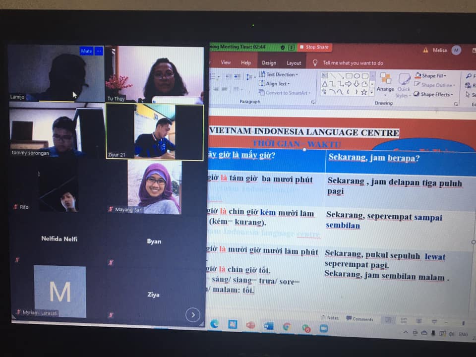 Di tengah pusat wabah Covid-19 di Ibukota Jakarta, kursus bahasa Vietnam online untuk orang Indonesia yang diselenggarakan Ibu Tu Thuy telah menyerap sangat banyak siswa. Mereka adalah para jurnalis muda, para pendengar VOV yang tercinta, dan para pelajar SMA di daerah pedesaan yang jauh.