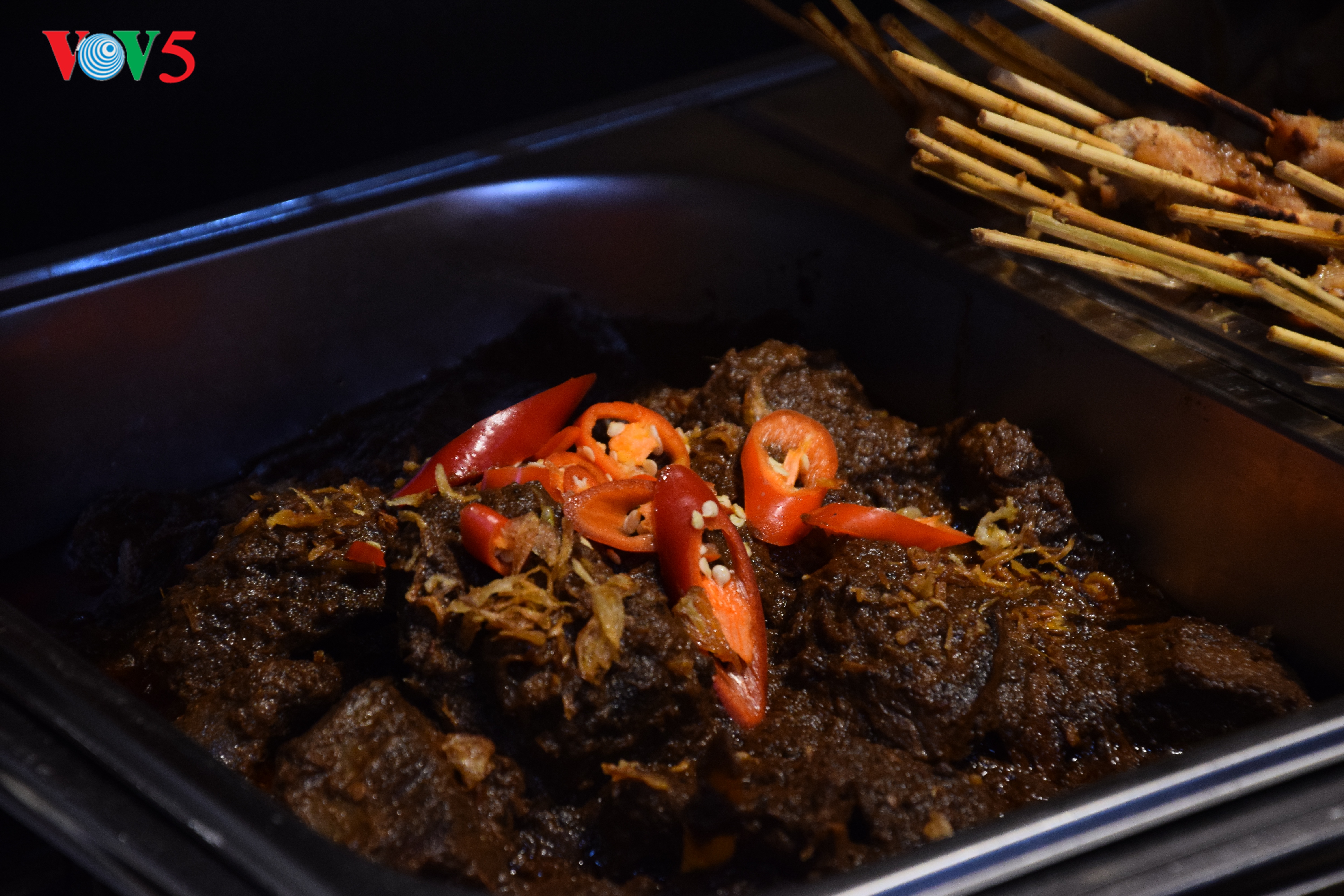 Saudara-saudara pendengar! Saya sedang berada di lantai dua di Restoran Batavia. Pada hari ini, di restoran ini berlangsung program “Cita rasa kuliner Indonesia” yang diselenggarkan oleh Kedutaan Besar Indonesia di Vietnam telah menyerap kedatangan banyak pemakan. Dalam ruang yang luasnya kira-kira 90m2, para pelanggan sedang menikmati masakan-masakan khas dari negeri ribuan pulau Indonesia