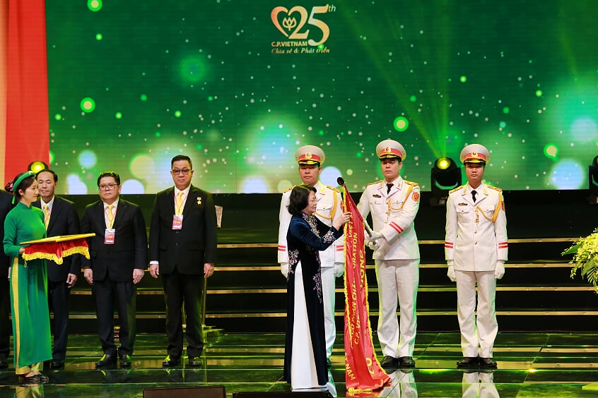 “Kami menilai tinggi sumbangan-sumbangan yang diberikan CPV dalam waktu 25 tahun ini kepada cabang peternakan Vietnam dan hasil perikanan. Dengan solusi-solusi, pekerjaan yang tepat waktu dan efektif, terutama menyambut semua haluan, kebijakan Pemerintah, berbagai kementerian dan instansi Vietnam dalam tatalaksana pasar, tatalaksana harga, jenis produksi dan lain-lain telah membawa CPV menjadi unit yang menduduki kira-kira 20% produktivits jenis pangan budidaya hasil perikanan di seluruh negeri, turut membawa Vietnam menjadi negara yang menduduki posisi pertama di antara negara-negara ASEAN dan menduduki posisi ke-12 di dunia tentang industri pengolahan pangan peternakan.”
