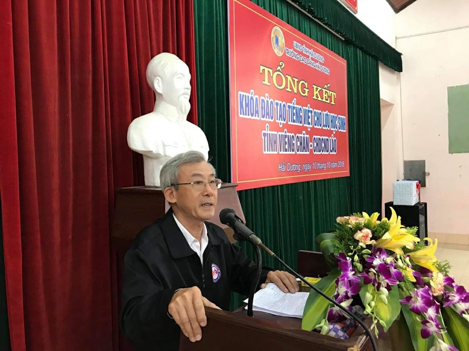 Bapak Hoang Dao berbicara pada acara penutupan kursus pendidikan bahasa Vietnam untuk siswa Provinsi Vientine, Laos