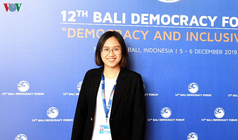 Di samping kalangan perempuan, pemuda juga memainkan peranan penting dalam demokrasi. Dari tahun 2017, di Forum Demokrasi Bali telah memperluas lagi Forum Mahasiswa Demokrasi Bali (BDSC) dengan tujuan menyampaikan nilai demokrasi kepada generasi muda dan menerima pandangan dari kalangan muda terhadap demokrasi. Pada tahun ini, BDSC kali ke-3 diadakan dengan tema: “Kalangan muda dan inklusivitas dari demokrasi digital”. Nguyen Thi Ngoc Anh, mahasiswi tahun ke-3, Fakultas Internasional, Universitas Nasional Hanoi, salah seorang peserta forum kali ini, mengatakan: