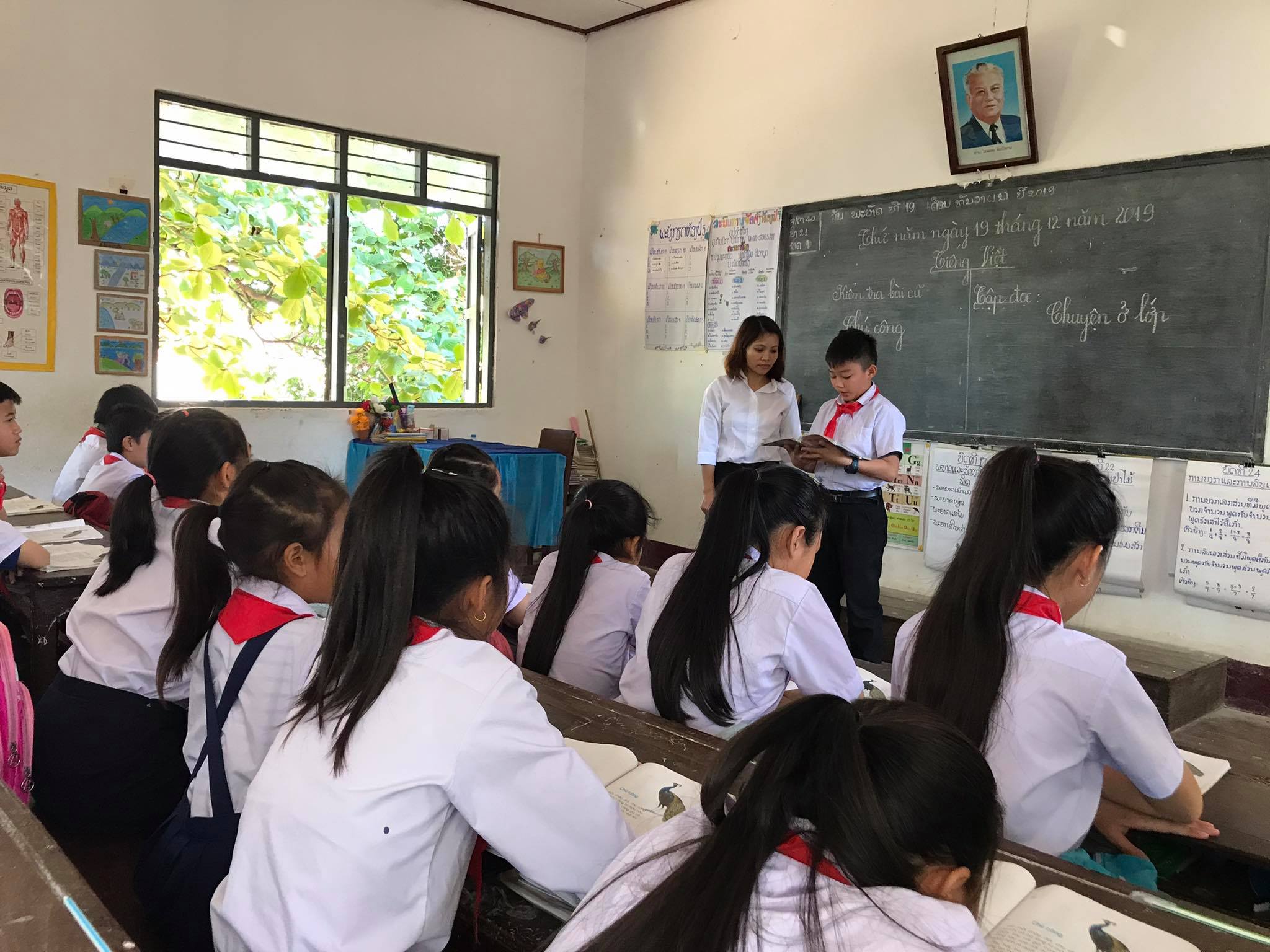 Bu guru Le Thi Nga, guru bahasa Vietnam untuk kelas 1, dari Provinsi Quang Binh, Vietnam Tengah, memberitahukan ia datang di Laos untuk mengajar sejak September 2016 karena perasaannya terhadap warga Vietnam yang tinggal jauh dari tanah air, dan juga ingin mengerti lebih mendalam tentang Laos.