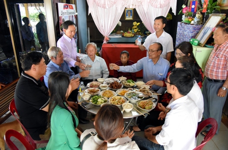 Keluarga kakek Dang Van Hong adalah salah satu di antara keluarga-keluarga veteran aktivis revolusioner di desa Xieng Vang, Kabupaten Noongs Boc, Provinsi Kham Muon, ayunan revolusi Vietnam dan Laos pada lebih dari 80 tahun lalu. Ketika tahu ada pokja yang mengunjungi keluarganya, dia merasa sangat gembira dan terharu. Dia menyatakan bahwa setiap tahun, ketika sampai pada hari-hari menjelang Hari Raya Tet, anak, cucunya tetap datang berkumpul untuk menyiapkan jamuan akhir tahun. Dia mengatakan: “Orang-orang yang belum datang ke Xieng Vang ini mengatakan bahwa warga di sini semuanya adalah warga Laos, tapi bukan. Di sini, adat tradisional tetap dijaga. Pada Hari Raya Tet masih ada kue Chung, kue Tay untuk memuja nenek moyang dan mengucapkan selamat Hari Raya Tet kepada setiap keluarga. Semua warga di sini juga mengikuti adat istiadat Vietnam”.
