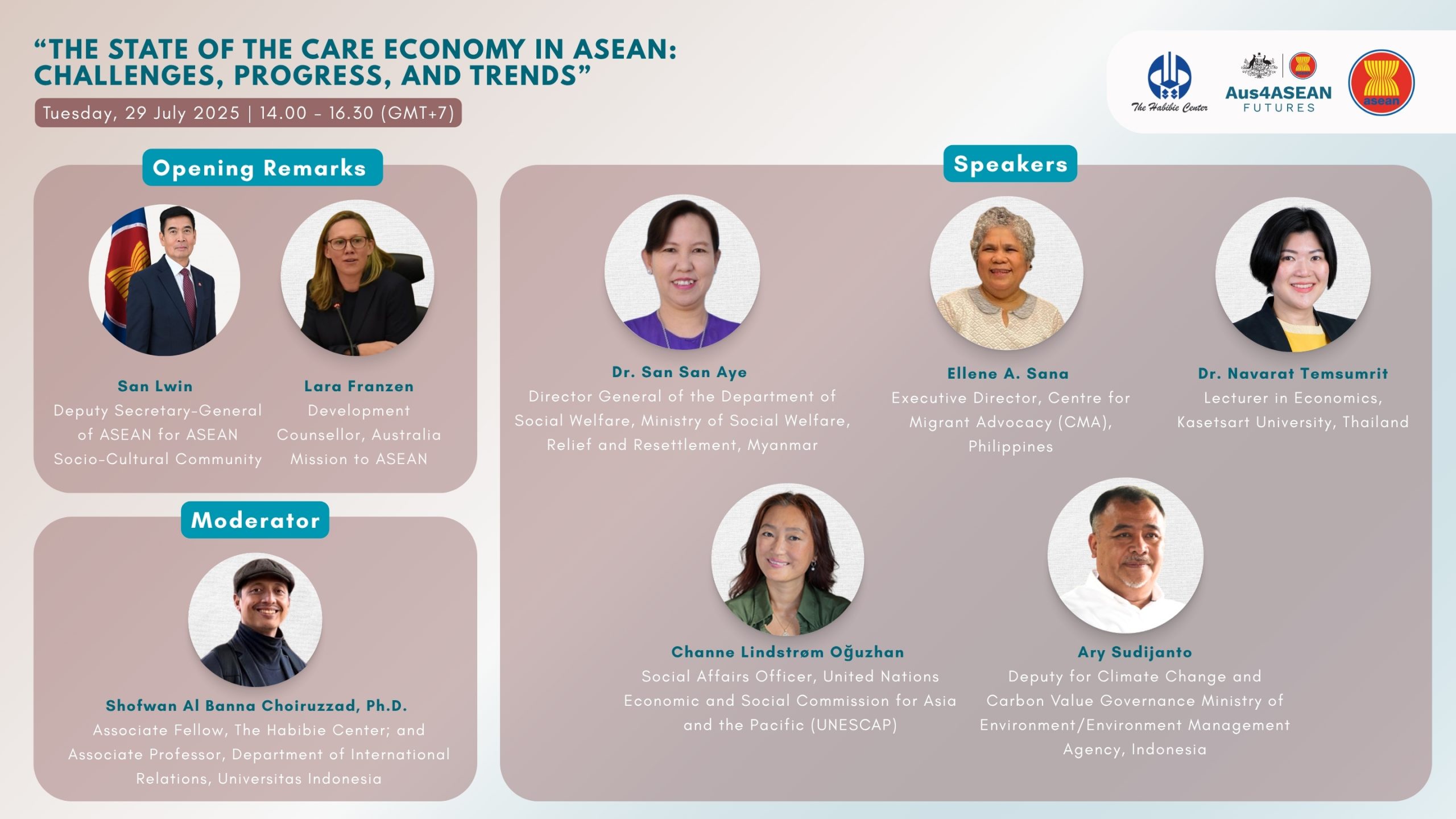 “Pernyataan ASEAN tentang Penguatan ekonomi perawatan dan pendorongan daya tahan Komunitas ASEAN pasca tahun 2025 mencerminkan komitmen bersama dari semua negara anggota ASEAN dalam meningkatkan visi dan nilai pekerjaan perawatan sebagai satu pilar penting dari pembangunan yang berkelanjutan. Pernyataan tersebut menekankan beberapa prioritas strategis, yang meliputi penerapan teknologi dan pengokohan ekonomi perawatan dengan dukungan digital, bersamaan itu menekankan hubungan antara ekonomi perawatan dengan isu-isu yang baru muncul seperti perubahan iklim, pandemi dan kemampuan pemulihan pasca musibah”.