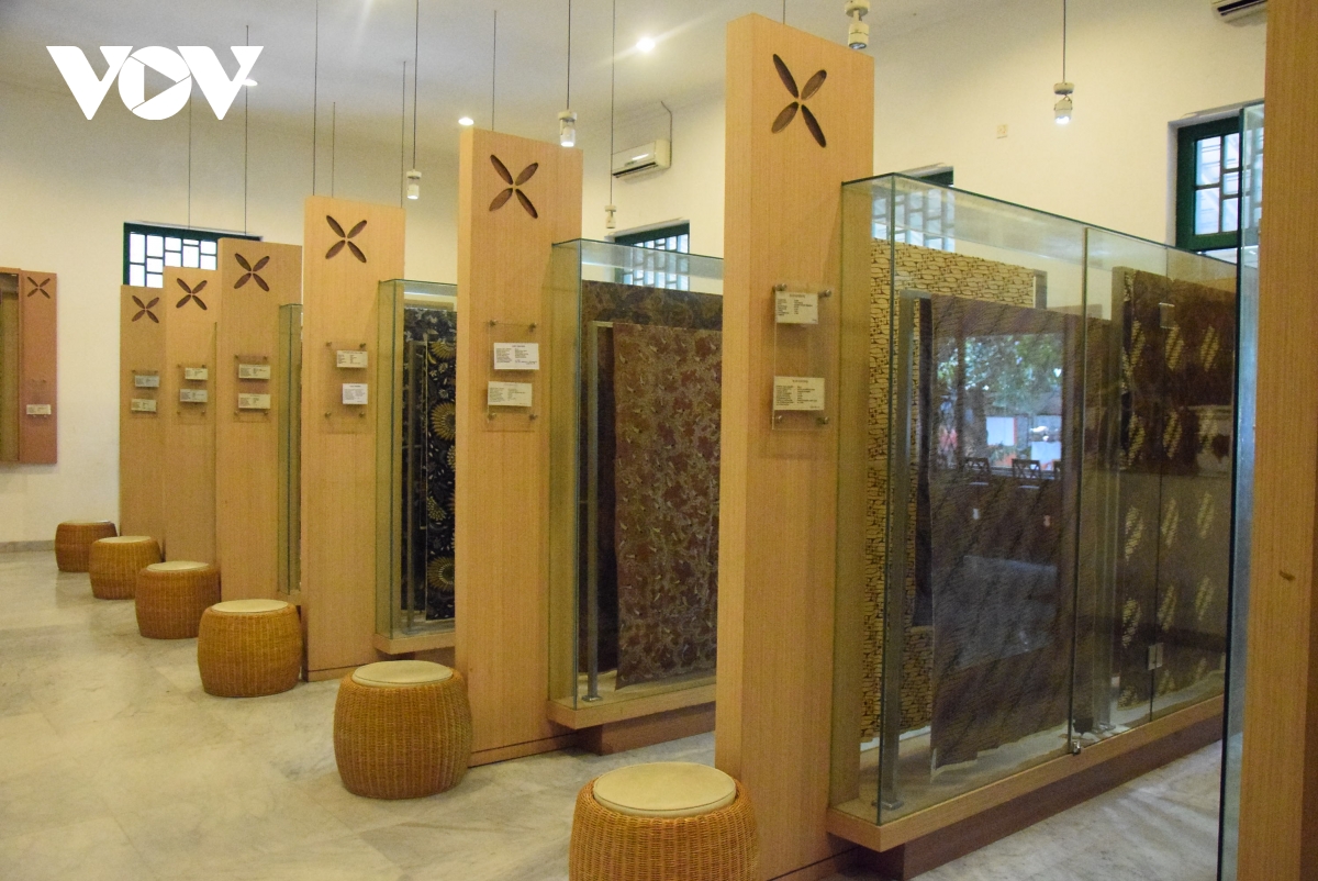 Yang lebih unik ialah galeri dengan lebih dari 300 jenis kain batik, satu pusaka budaya Indonesia yang diakui UNESCO. Muncul di Indonesia pada 500 tahun yang lalu, kain Batik dikenal sebagai satu jenis kain yang digunakan untuk menjahit pakaian raja dalam istana. Sekarang ini, kain Batik diperuntukkan bagi semua orang. Seni membatik dengan lilin lebah dan teknik celup kain Batik menunjukkan ketelitian dan kemahiran tukang kerajinan tangan Indonesia.