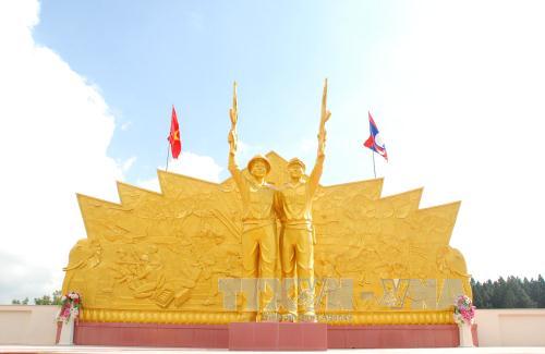 Bangunan mengupgrade dan memugar Patung Monumen Peringatan Persekutuan Militan Vietnam-Laos mulai dibangun dengan luas 4 Hektar pada Agustus 2014. Bangunan ini terdiri dari 13 bagian, diantaranya ada relief yang tingginya 4,5 meter, lebarnya 9 meter, rumah pameran dan khususnya adalah patung dua prajurit Vietnam dan Laos yang bahu-membahu, menjunjung tinggi senapan. Patung monumen diletakkan di depan relief dan di tengah-tengah perkarangan. Letnan Jenderal Chansamone Chanyalat, Deputi Menteri Pertahanan Laos dengan rasa haru mengatakan bahwa selama berjuang menyatukan Tanah Air, dua bangsa telah selalu bersatu padu, bahu-membahu dan bersama-sama menentang agressor bersama. Dia memberitahukan: “Bangunan Patung Monumen Peringatan di kabupaten Paksong mempunyai makna yang penting terhadap sejarah hubungan dua negara Vietnam-Laos. Karena ini menunjukkan rasa hutang budi yang diberikan oleh Partai, Pemerintah dan rakyat Laos kepada para prajurit sukarelawan dan pakar Vietnam yang membantu revolusi Laos, sumbangan dari kawan-kawan dalam tahap perjuangan membebaskan bangsa, menentang imperialis Amerika Serikat dan neo - kolonialis maupun dalam usaha membangun dan membela Tanah Air dewasa ini. Dua tentara dan dua bangsa telah bahu-membahu berjuang, ringan sama dijinjing, berat sama dipikul untuk bisa merebut kemenangan terakhir di Laos pada tanggal 2 Desember 1975. Semua kemenangan yang dicapai oleh revolusi Laos tak terpisahkan dari bantuan sahabat Vietnam sesaudara. Patung Monumen Peringatan ini akan menjadi simbol dari solidaritas yang erat antara dua bangsa dan untuk selama-lamanya dicatat bersama-sama dengan perjalanan waktu”.