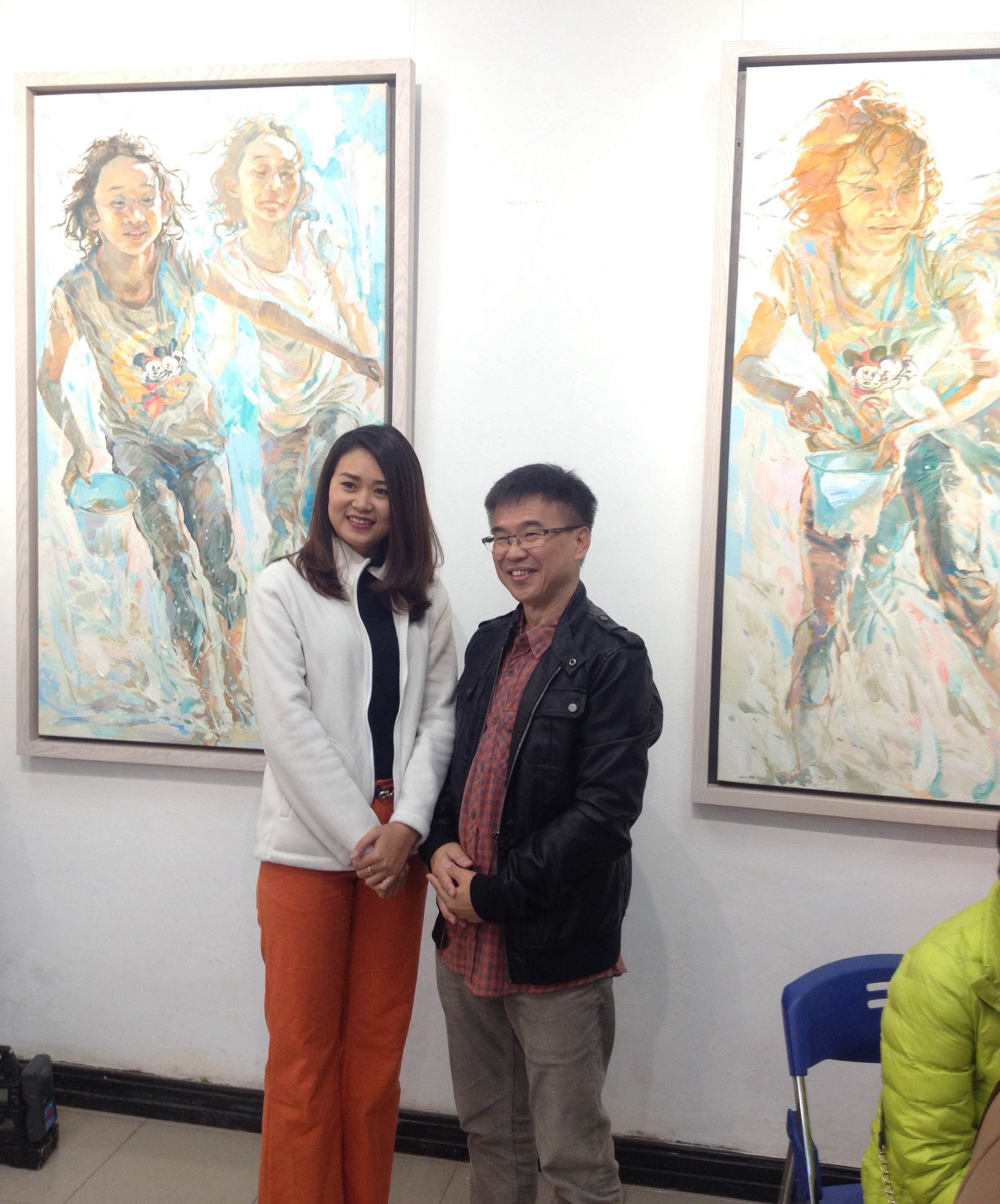 Pelukis Malaysia, Chua Cheng Koon (kanan) dan karyanya di pameran lukisan