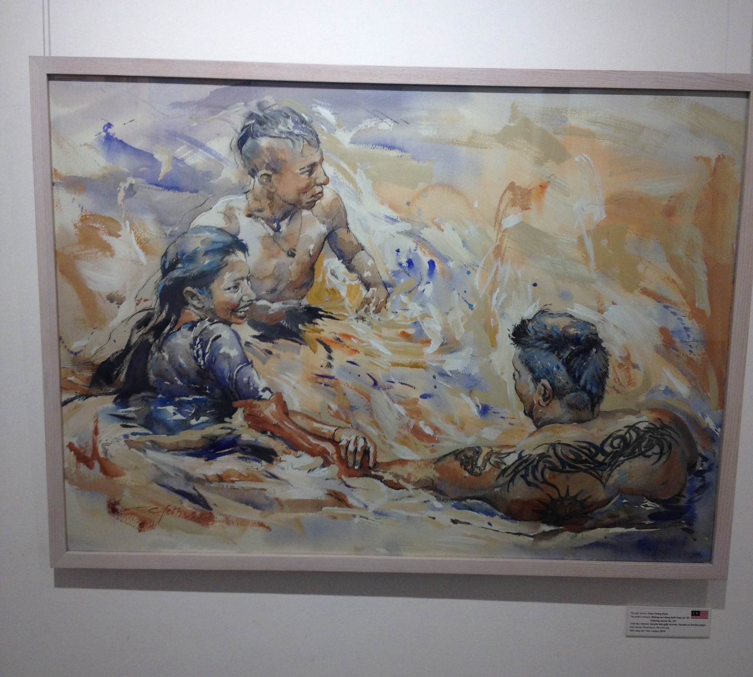 “Kali ini, saya membawa ke pameran ini empat karya yang saya lukis dengan cat acrylic di atas kanvas. Saya menginginkan agar semua orang punya tambahan cara memandang tentang kehidupan di Malaysia. Anak-anak bergurau disamping sungai dengan wajah-wajah yang menggembirakan, aktivitas-aktivitas di tengah-tengah arus air yang sejuk di bawah terik sinar mata hari”.