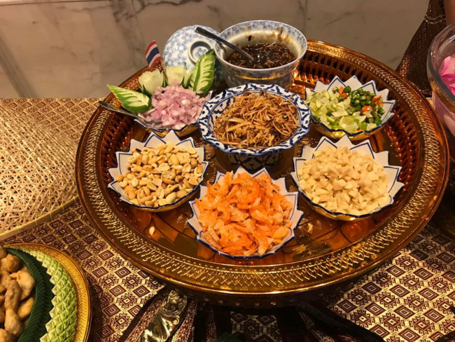 Hampir semua masakan disiapkan untuk melayani pelanggan. Hanya ada 3 masakan “utama” pada jamuan ini yang diatur di meja dapur agar para koki Thailand memanifestasikan “kejuruannya” di tempat yaitu salad papaya, Pho goreng dan mie Sukhothai. Saudari Yanat Maartloet, salah seorang di antara 3 koki yang berpengalaman dari Sekolah Kuliner yang kenamaan SuanDusit di Kota Bangkok, Thailand diundang untuk “mendemonstrasikan bakatnya” memberitahukan bahwa selain mengolah masakan-masakan yang enak bagi pelanggan, dia juga memikul satu tugas yang tidak kurang arti pentingnya. “Pada hari ini, saya hadir di sini untuk memperkenalkan cara membuat selada papaya Thailand kepada semua orang. Saya ingin membuat semua orang mengerti bahwa membuat salad papaya Thailand tidak sulit seperti yang dikira semua orang. Hanya mengerti secara jelas bahan-bahan yang perlu digunakan yaitu papaya, wortel, kacang panjang, jeruk limun, tomat, udang kering, khususnya kacang tanah goreng dan kecap ikan maka semua orang bisa membuatnya”.