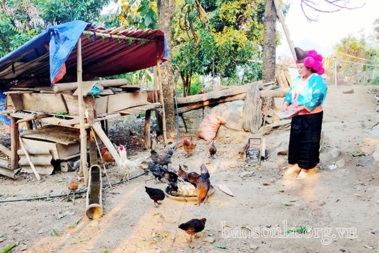 Saudari Va Thi Kia merawat kawanan ayamnya (Foto: baosola.org.vn) |