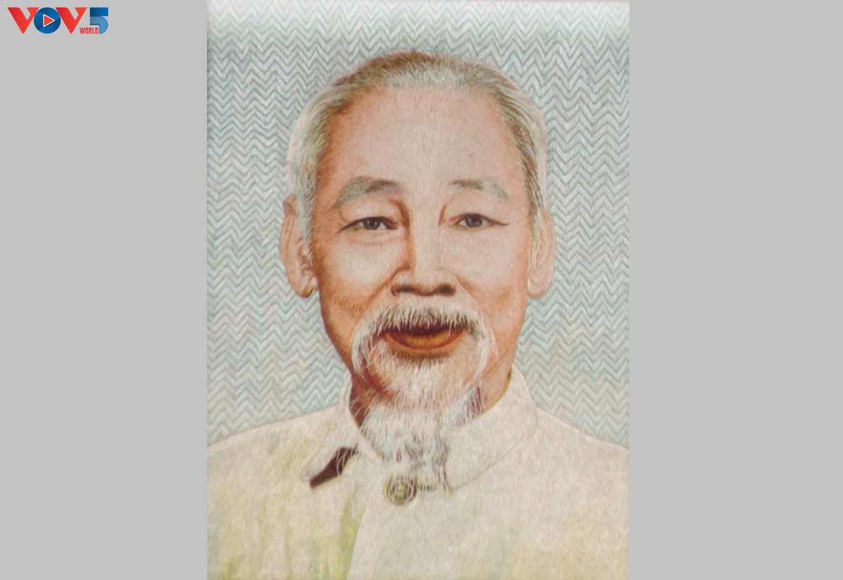 Potret Presiden Ho Chi Minh disulam dengan benang sutra (Foto: Huyen Trang /VOV)