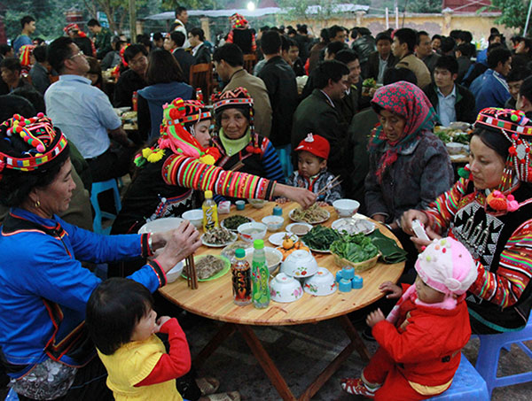 Hari Raya Tet tradisional “Co nhe tra” berlangsung dalam waktu 3 hari. Semua orang di dukuh bisa berpesta makan dan bermain dengan santai setelah setahun bekerja keras serta menyampaikan ucapan-ucapan selamat baik yang memberikan banyak kemujuran, cukup sandang-cukup pangan dan usaha peternakan bisa bekembang baik pada tahun baru. Dalam komunitas etnis-etnis di Vietnam, setiap etnis mempunyai adat merayakan Hari Raya Tet sendiri, waktunya berbeda-beda, sesuai dengan cara mereka menghitung kalender. Adat merayakan Hari Raya Tet tradisional “Co nhe tra” tradisional dari warga Ha Nhi memanifestasikan kekhususan tentang kebudayaan, memberikan sumbangan pada panorama yang kaya raya dan berwarna-warni dalam jati diri budaya 54 etnis dari bangsa Vietnam.
