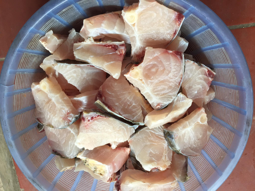 Ikan besar setelah dipotong, tulangnya dibuang, dibersihkan dan dibiarkan menjadi kering, kalau tidak bersih, ikan akan berbau amis sehingga masakan ikan asam akan tidak enak. Bagi masakan ikan asam, tepung beras justru merupakan bahan yang tidak bisa kurang. Thinh -satu jenis tepung beras yang dibuat dari beras ketan yang disangrai dan digiling halus. Setelah itu, Thinh akan dicampur dengan bermacam jenis bumbu yang terdiri dari lengkuas gilingan, sedikit bawang putih yang digeprek, garam, semuanya akan dicampur dengan ikan. Bapak Luong Van Muon, warga di dusun Lau, Kecamatan Chieng Le, Kota Son La, Provinsi Son La memberitahukan:
