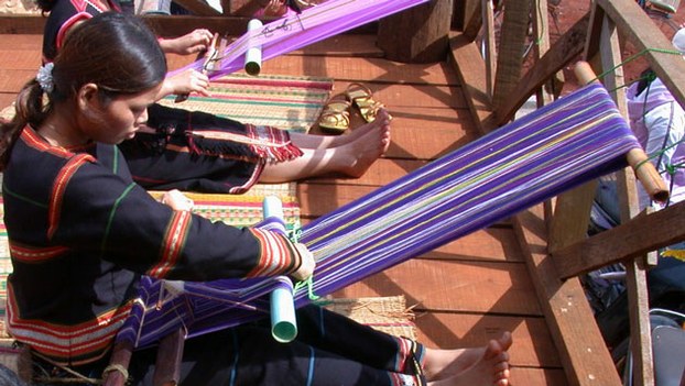 “Dulu, wanita etnis M’nong harus tahu menenun kain ikat, agar ketika menikah, semua produk kain ikat akan digunakan sebagai benda-benda balasan kepada keluarga fihak suami-nya, seperti selimut besar dan sarung pola bordir”.