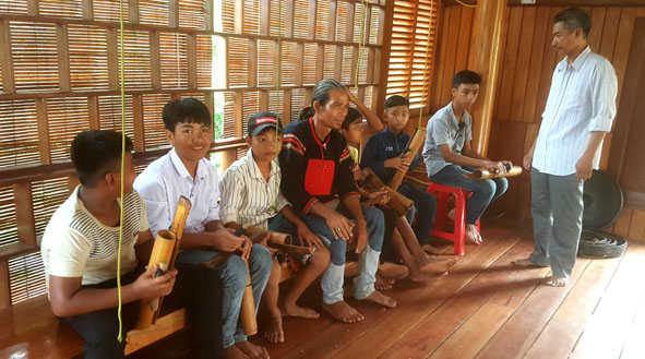 Suara bonang bambu yang meriah di rumah panjang milik keluarga bapak Duong Van Tho, di dukuh Cham A, Kecamatan Cu Dram, Kabupaten Krong Bong telah menjadi terbiasa bagi masyarakat di dukuh selama lebih dari setahun ini. Dari suara-suara yang tidak keruan pada permulaannya, dengan pendidikan dan bimbingan yang cermat dari seniman, telah berangsur-angsur menjadi jelas melodinya. Y Gon Eban, di dukuh Cham A, yang telah ikut belajar menabuh bonang dari musim panas lalu hingga sekarang. Alih-alih asyik di warung internet untuk bermain game, ia telah mempunyai kegemaran baru karena adanya dorongan antusias dari bapak Duong Van Tho.