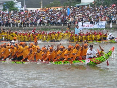 Bagi para warga etnis Khmer, kehidupan mereka berkaitan dengan usaha tani, pada setiap pesta Oc Om Boc- Lomba pendayung jukung, meskipun sibuk dengan usaha mencari nafkah, tapi warga etnis Khmer masih menyediakan waktu untuk berpartisipasi dalam pesta ini. Pesta Oc Om Boc- Lomba pendayung jukung Ngo dari warga etnis Khmer telah dan sedang berkembang secara kuat. Pada beberapa tahun belakangan ini, pesta tersebut telah menjadi satu event budaya tradisional yang besar dari propinsi Soc Trang pada khusus-nya dan daerah dataran rendah sungai Mekong pada umum-nya.