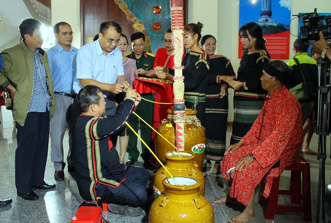Upacara menyedekahi guci yang unik dari warga etnis minoritas E De. (Foto: Koran Tien Phong)