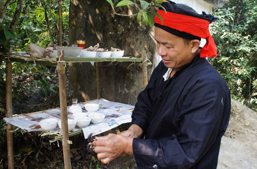 Sangat memahami upacara sedekah kepada hutan dari etnisnya, bapak Trieu Tien Bao, di Dukuh Chanh memberitahukan: “Hutan amat penting, hutan memberikan banyak manfaat, ada pohon untuk melindungi sumber air, menanggulangi erosi, kayu memberikan banyak kepentingan praksis. Tradisi dukuh kami yalah tiga tahun sekali mengadakan upacara sedekah kepada hutan sekali. Kami menyelenggarakan upacara ini dan menyedekahi para dewa, dewan hutan, dewa gunung, dewa air dan lain-lain memohon supaya dewa melindungi warga untuk mendapat kehidupan yang semakin baik dan menggembirakan”.