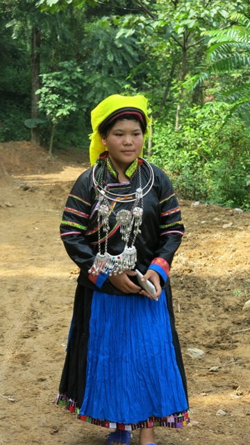 Tidak berwarna-warni seperti beberapa etnis minoritas yang lain, busana tradisional dari warga etnis Pu Peo sangat sederhana dan lugas. Kaum wanita Pu Peo biasanya mengenakan baju panjang hitam, di luarnya ada korset dan hiasan pada pakaian mereka biasanya adalah potongan-potongan kain berwarna-warni. Ibu Cung Thi Xuan, seorang warga etnis Pu Peo, memberitahukan: Warna yang dominan dalam busana dan motif ialah warna merah dan hijau. Warna merah melambangkan kaum laki-laki, melambangkan penghormatan dari kaum wanita Pu Peo kepada kaum laki-laki, yaitu sokoguru dalam keluarga. Oleh karena itu, kain warna merah selalu diutamakan dan dijahit duluan. Sedangkan warna hijau melambangkan kaum wanita dalam keluarga. Satu stel pakaian ini biasanya dibuat dalam waktu kira-kira 2 bulan.