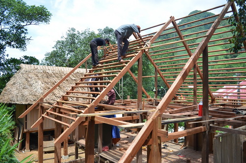 Pembangunan rumah panggung etnis minoritas Van Kieu