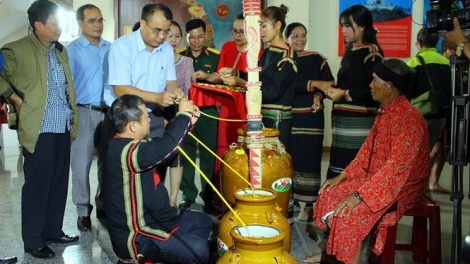 Upacara menyedekahi guci yang unik dari warga etnis minoritas E De , cabang Mdhur dan Blo di Provinsi Dak Lak