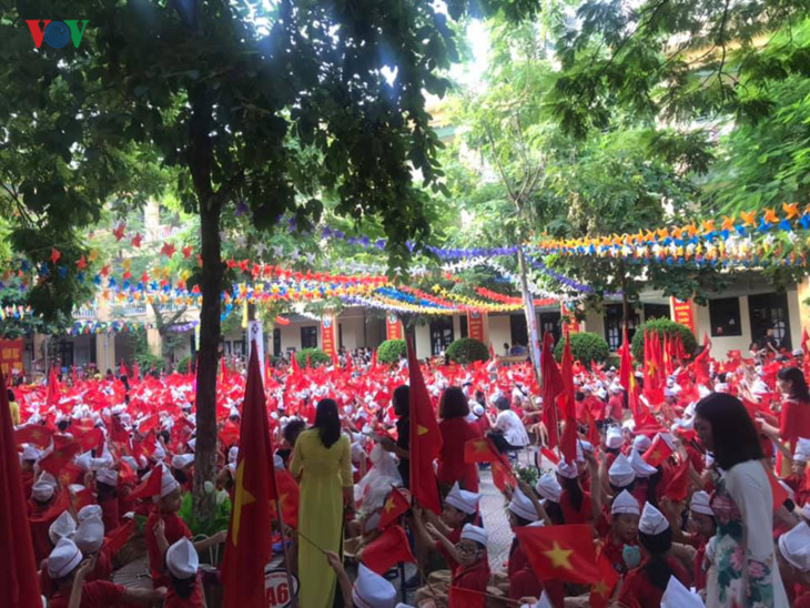 Phan Dinh Giot Primary School, Hanoi, in the jubilant atmosphere of the new school year. |