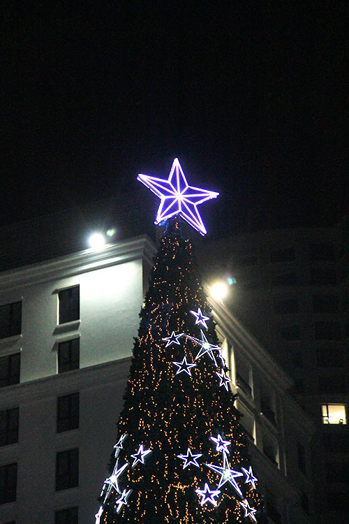 More than 1.000 LED lights twinkle on a 32.5-metre tree at Vincom Royal City Mega Mall’s first tree lighting.