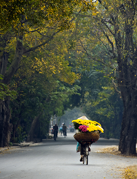 | A woman selling flowers on Yen Phu street |