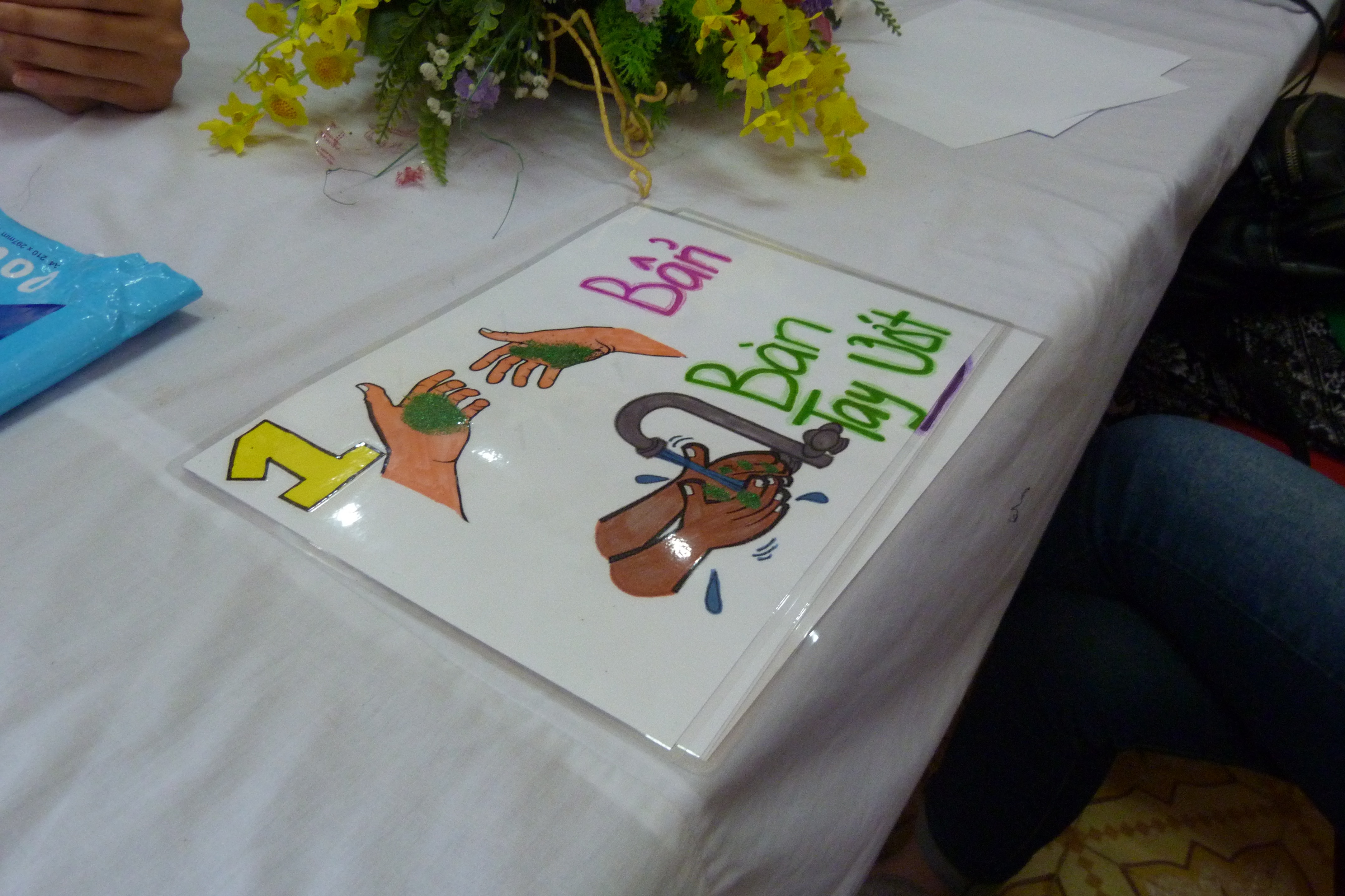 | One of the many colorful posters that explain in simple Vietnamese words the steps to having clean fingers |