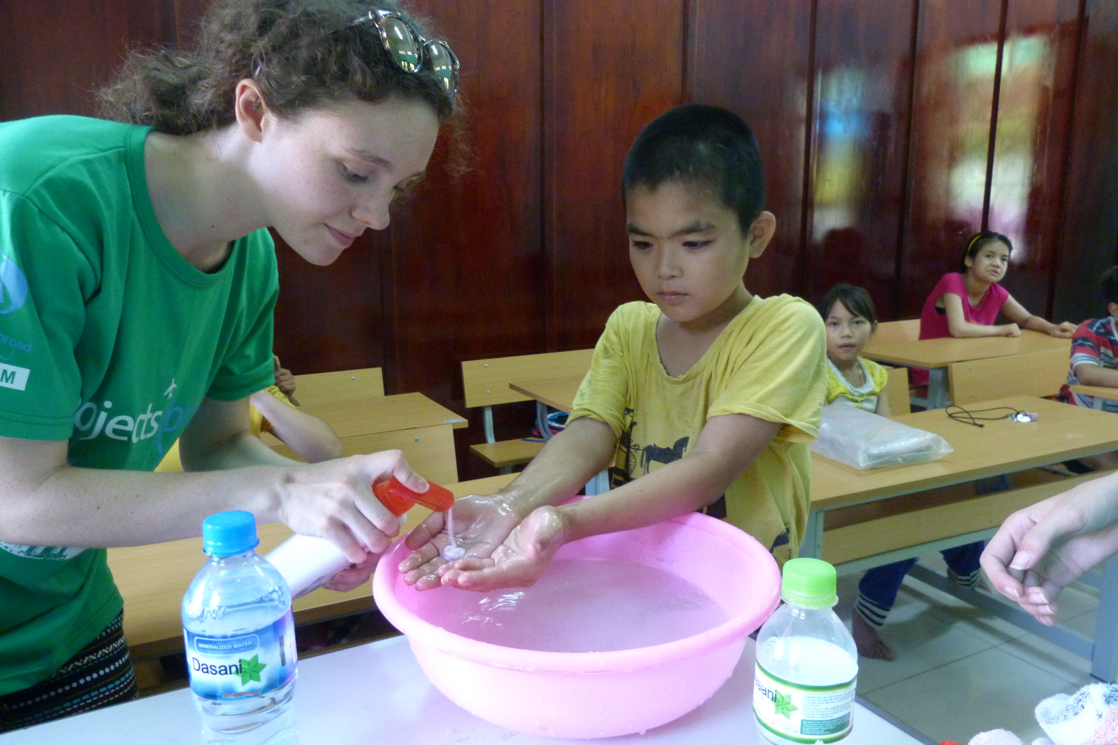 | Volunteers preapre water for their 'lessons' |