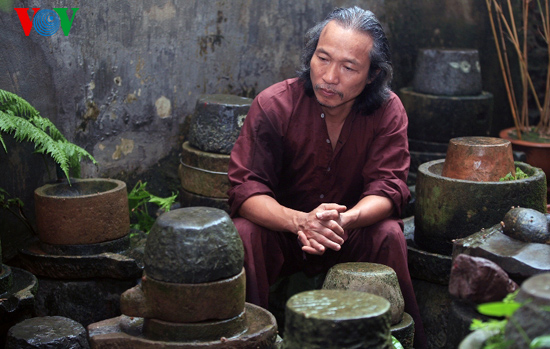 (VOV) - Manh, a local photographer in Bac Giang province, has spent his leisure time traveling the length and breadth of the province to collect used stone grinders and display them in his garden.