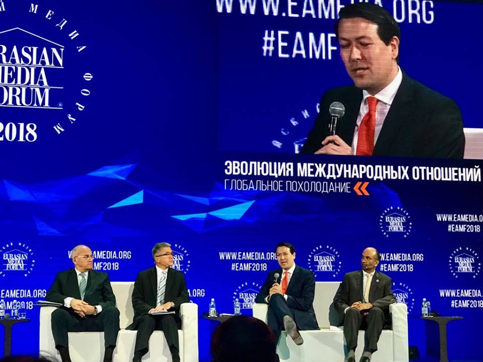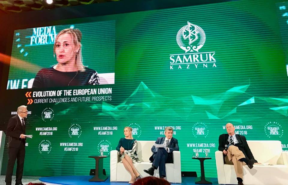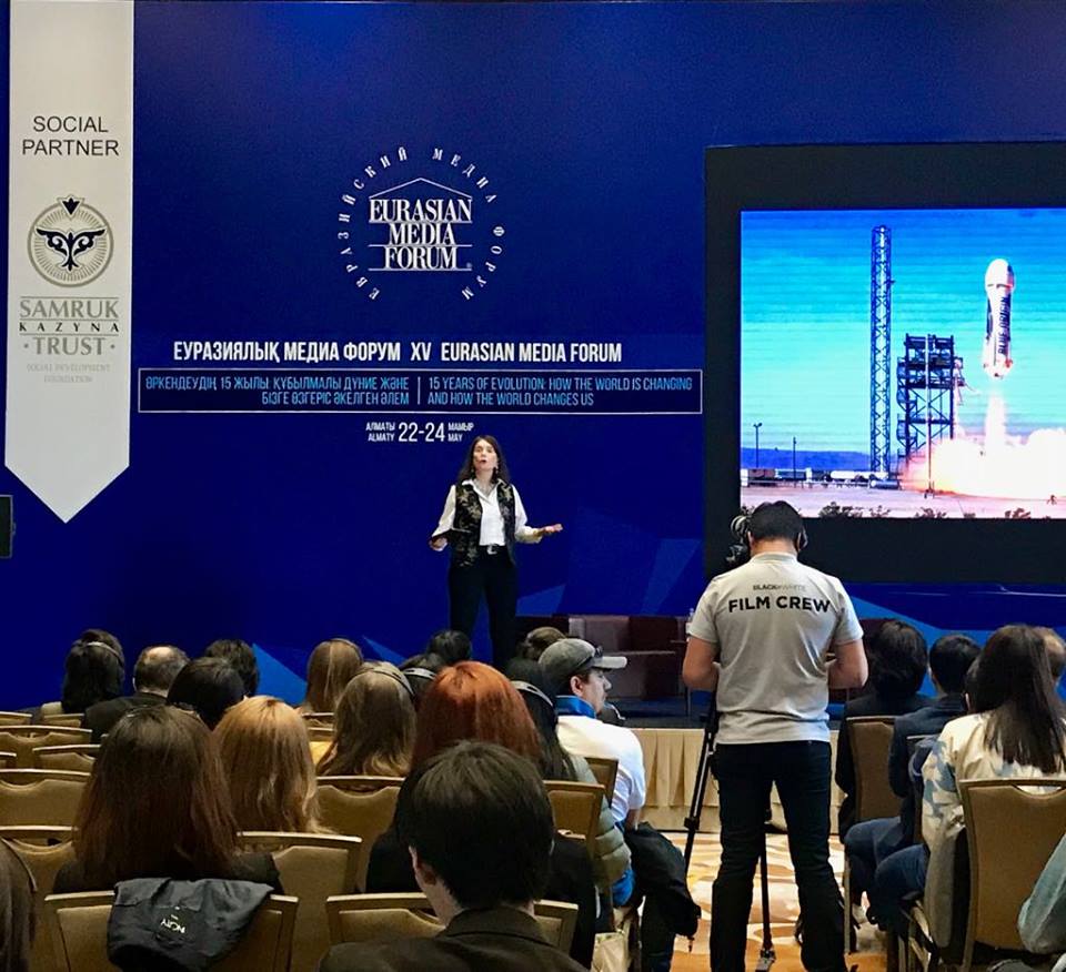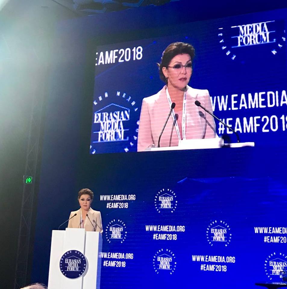 | Dr. Dariga Nazarbayeva, founder of the Eurasian Media Forum and Chairperson of the EAMF Organizing Committee, welcomes delegates (Photo: Thu Ly/VOV) |