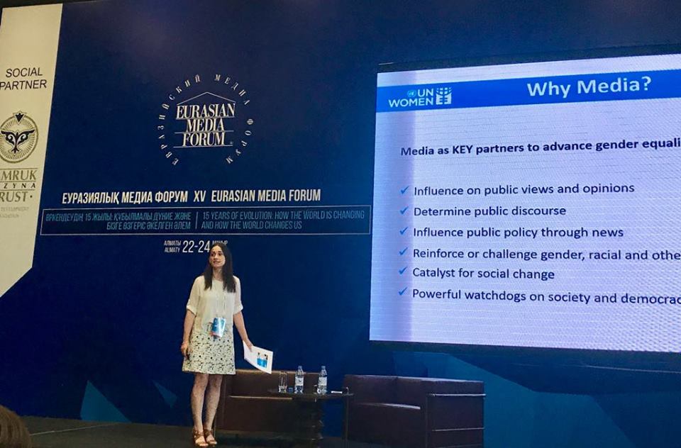 | Gizem Yarbil Gurol, UN Women Communications and Advocacy Specialist for Europe and Central Asia, in a master-class on gender balance in the media and gender-sensitive reporting practices (Photo: Thu Ly/VOV) |