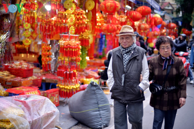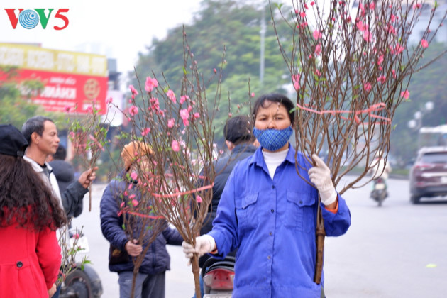 (VOVWORLD) - A few days before the Lunar New Year (Tet), people are rushing around preparing for the important occasion. Branches of flowering peaches and kumquat trees are for sale along pavements on Nhat Tan, Lac Long Quan, Tay Ho Street. Heading down to Hanoi’s Old Quarter, one sees the Tet market selling hundreds of colorful decorative items.