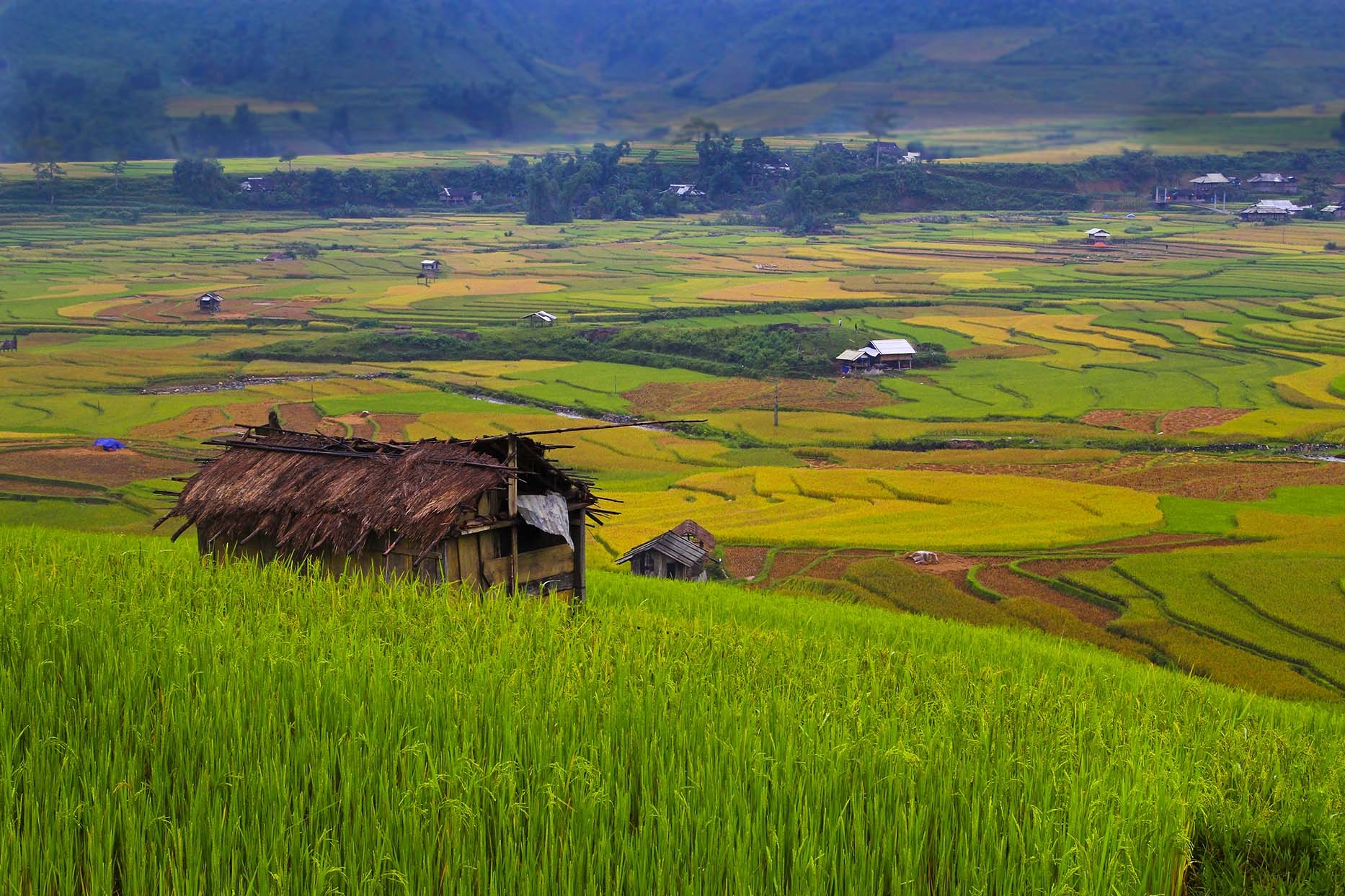 (VOVworld) - Harvest time is probably the most beautiful season in the northwestern Vietnam with many vast yellow terraced fields. These fields, which were created by many generations of ethnic minority groups like the Ha Nhi, H'Mong and Dao, have existed for hundreds of years in Vietnam. Visitors often flock to the region during September and October to capture this most beautiful moment of the year with their own eyes. VOV introduces some photos taken in Mu Cang Chai in the northwestern Vietnam, during harvest time, by Nguyen Anh Tuan.