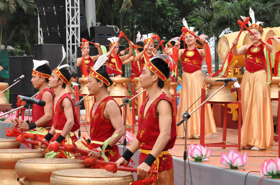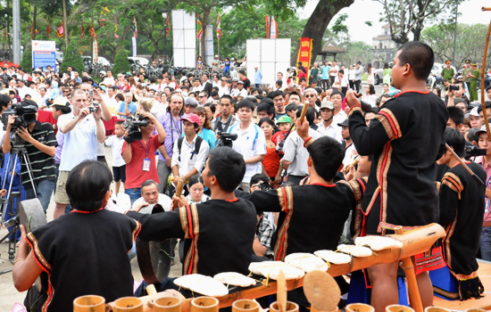 (VOVworld) - The first international drum and percussion instrument festival opened on 10th April as part of the ongoing 2012 Hue festival in the imperial city of Hue. Audience were entertained with magnificent performances by bronze and royal drummers, the Tay Son drum group and players of Tay Nguyen (Central Highlands) gongs.