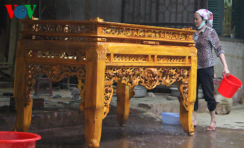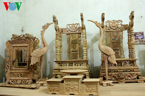 (VOVworld)- About 40km west of Hanoi, Thạch Thất District is known for making wooden devotional items. Products here are made from natural wood.