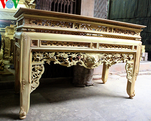 An ancestral altar with finished details is priced from 10-15 million VND. The piece will be painted and finished to the customer's specification.